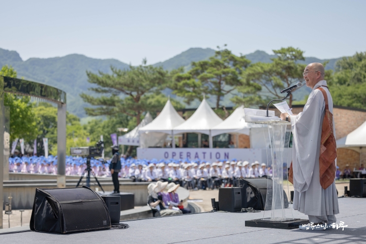 “Today marks the 160th anniversary of the birth of independence activist Master Baek Yongseong. In commemoration of this day, we have organized this Grand Dharma Assembly, gathering 10,000 people to promote peace on the Korean Peninsula, national unity, and sustainable development of our nation. First and foremost, I would like to express my deepest gratitude to all participants who have joined us in this assembly.
