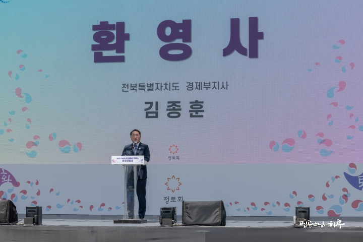 Many prominent leaders from various sectors of South Korea gathered for this event. A few of them took to the stage to give congratulatory speeches. First, the Governor of Jeollabuk-do, who was scheduled to deliver the welcoming address today, had to cancel unexpectedly due to the earthquake in Buan yesterday. In his place, the Vice Governor read the congratulatory speech on his behalf.
