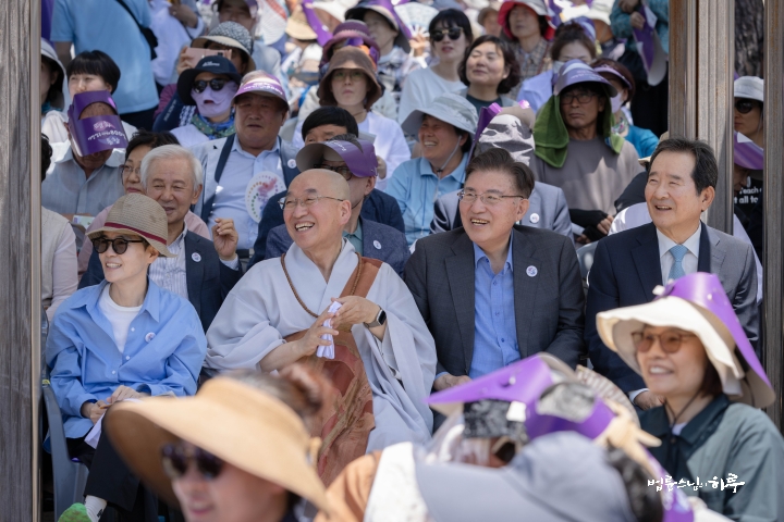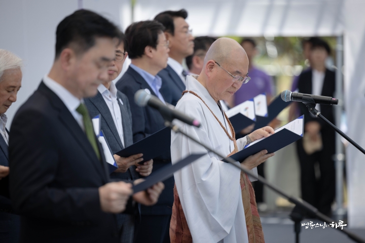 “Holding today’s Dharma assembly here in Jangsu, my hometown, to honor Master Yongseong’s noble aspirations and reflect on the teachings of the Buddha, fills me with profound emotion. Inter-Korean relations are deteriorating rapidly. If both sides do not engage in appropriate situation management, we face the prospect of prolonged and routine military standoffs. We must remember the lesson that even a bad peace is better than war, and work toward designing a future-oriented relationship between the North and the South. Of course, I believe in the resilience of our people. Despite the current uncertainty and frustration, I am confident that, just as our history has shown, we can overcome and triumph over an uncertain future to move toward a brighter one. Like a river that flows relentlessly toward the sea, never abandoning its course, I trust that we all will join in the steps toward historical progress. I believe that today’s gathering is a moment for unifying our hearts and minds through communication and unity.”