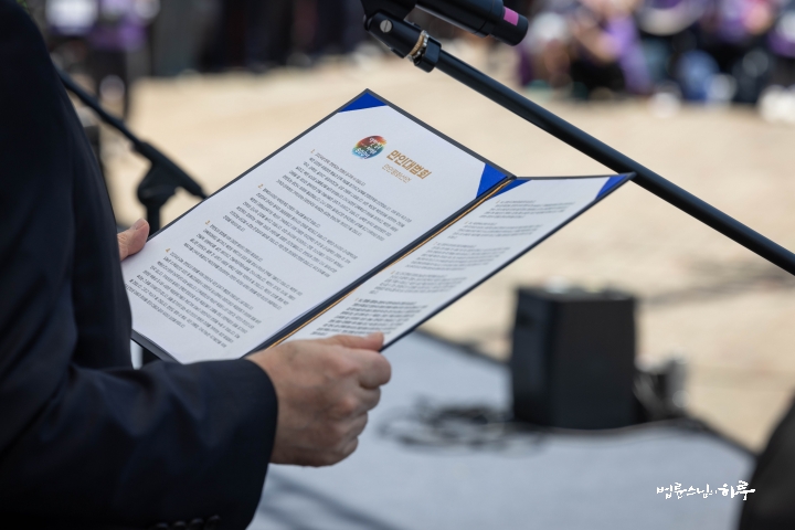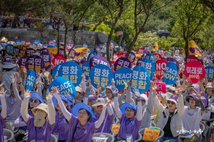 “And let us collectively convey our earnest desire for peace to the political arena, allies, neighboring countries, and global citizens. Our destiny must be forged with our own strength. We appeal for the nationwide dissemination of ‘Actions for Peace on the Korean Peninsula.’ We, who have gathered here today, must create another chapter in our history for our ancestors and our children.