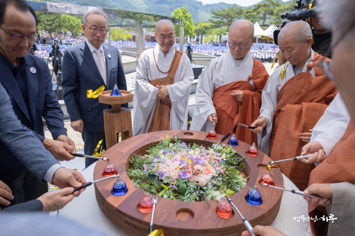 Just as Master Yongseong took the forefront of the independence movement during the Japanese occupation, the collective action of 10,000 people to lift South Korea out of the quagmire of the threats of war and division is now ready. Today’s flame, starting from Master Yongseong’s birthplace at Jungnimjeongsa, will become a symbol of hope, spreading across the country and the world, a wish for peace and prosperity on the Korean Peninsula.