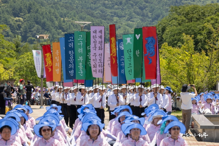 Finally, a peace march marked the grand finale of the event. A procession of 40 flag-bearers lined up in front of the stage. The flags encapsulated the historical epochs of our country with “a profound history and tradition,” as mentioned in the preamble of the Constitution, along with the future vision of a “Unified Korea.” Each flag bearing the name of each nation beginning with “Han-nara” and “Baedal-nara” to “Republic of Korea” and “Daehan Jeongguk(Righteous Nation of the Great Han)” marched first, and distinguished guests participated in the peace march.