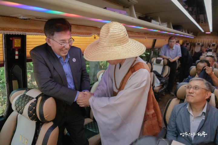After finishing their meal, the guests exchanged greetings before moving to the parking lot in time for the bus departures. Sunim personally went to the parking lot, boarded the bus with the guests who traveled from afar, and expressed his gratitude once again.