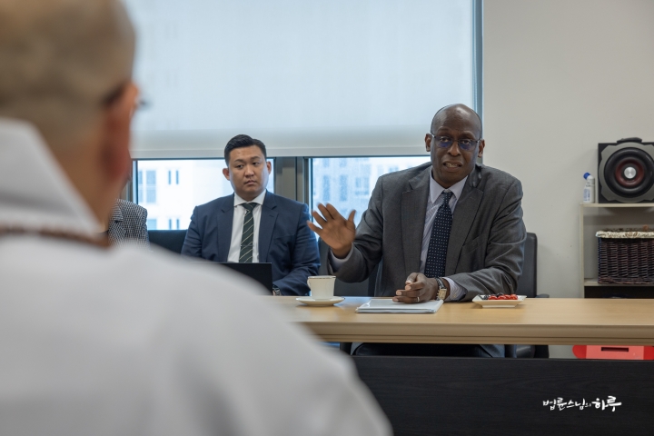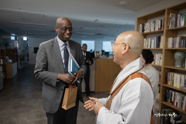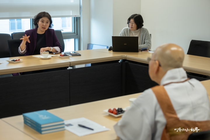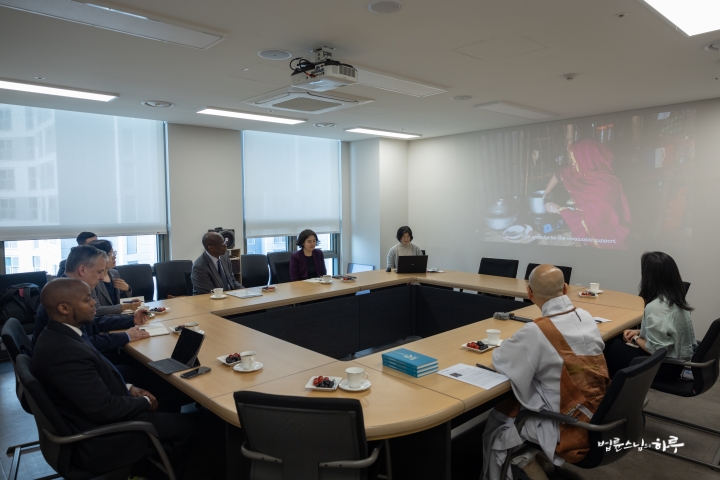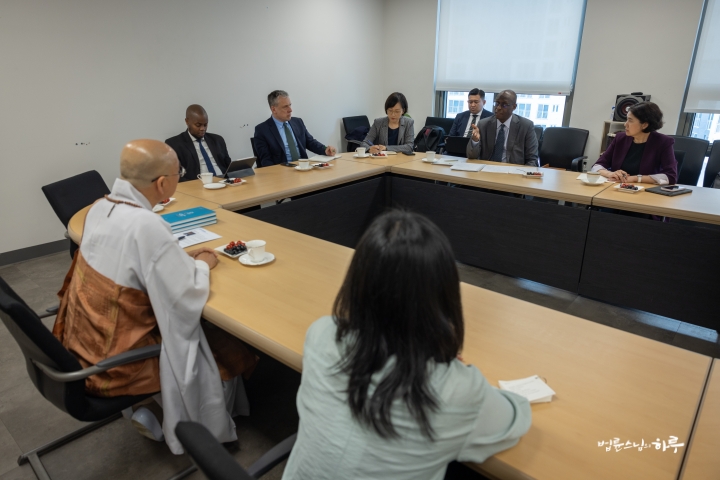 Hello! This morning, Ven. Pomnyun Sunim attended a memorial Dharma meeting commemorating the 21st anniversary of Ven. Seoam’s passing. Later in the afternoon, he met with the Assistant High Commissioner for Operations at the Office of the United Nations High Commissioner for Refugees (UNHCR) and his team to discuss the issue of Rohingya refugees.