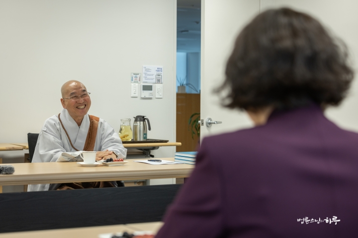 At 4:30 pm, Sunim met with the chairperson of the Planning Committee of the Peace Foundation to discuss its 20th-anniversary project. Later in the evening, he attended the live-streamed Friday Dharma Q&A session at the broadcasting studio in Seoul Jungto Center.