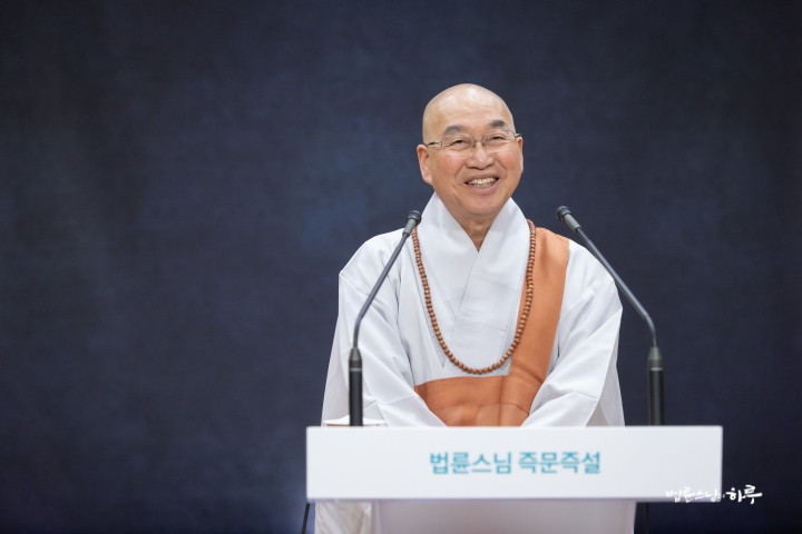 With that, the Dharma Q&A began. Last week’s session, live-streamed from Bhutan, was disrupted by a power outage. As a result, three people who missed the opportunity to ask questions last week, along with a newcomer, posed their questions today. One of them sought Sunim’s advice on self-healing, mentioning that she tends to be unfaithful while in romantic relationships because she didn’t receive enough love from her mother during childhood.